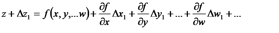 Так как ошибки ∆x, ∆y, ∆w малы, то функцию можно разложить в ряд Тейлора, ограничившись членами первой степени: