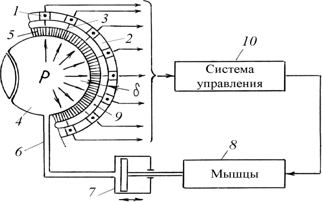 Рис. 28. Управление величиной зазора в измерительной структуре глаза.