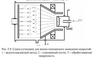 Плазменным напылением получают слои толщиной от 1 мкм до 1 мм. Прочность сцепления напыленного материала с основой может быть различной. Так можно получать корковые изделия состоящие только из напыленного материала. Одной из разновидностей процесса является ионная технология нанесения покрытий с помощью плазменных ускорителей (ионно-плазменное напыление) (рис. 5.9).