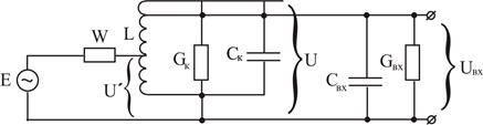 Заменяя, как и в предыдущем случае, антенно-фидерную систему генератором тока I=Eg с проводимостью g=1/W, перейдем к новой эквивалентной схеме. Пересчитаем входную проводимость и входную емкость активного элемента ко входу колебательного контура: