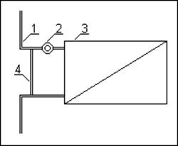 Для начала посмотрите, есть ли у Вас на трубопроводе отопления (1) байпас (4). Возможно, строители просто "забыли" его сделать. Тогда установка байпаса (4) и терморегулятора (2), на худой конец простого шарового крана, позволит регулировать объём теплоносителя через радиатор отопления (3). Это поможет регулировать температуру в помещении.