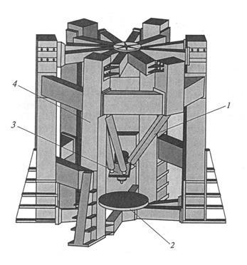1 — телескопическая штанга; 2 — стол; 3 — инструментальная головка; 4 — каркас (станина)