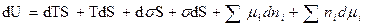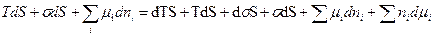 . Таким образом, объединённое уравнение I и II начала термодинамики для внутренней энергии поверхности с учётом поверхностей и их химической энергии имеет вид: