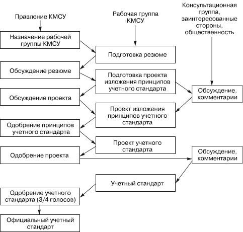 Процедура создания нового международного учетного стандарта отличается известной консервативностью, обстоятельностью, занимает относительно продолжительный отрезок времени и состоит из шести циклов: