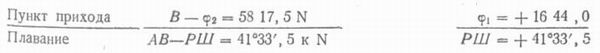 Пункт отхода F — φ1 = 24°17', 5 N по формуле (4) φ2 = — 5°49',2