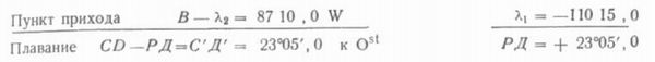 Пункт отхода С — λ1 = 110°15',0 W по формуле (5) λ2 = — 87°10',0