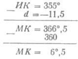 Пример 19. И К = 355°, d = 11°5W.