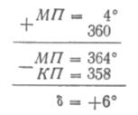 Пример 22. МП = 4°: КП = 358°