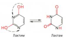 Оказалось, что в составе природных нуклеиновых кислот все оксипроизводные пуринов и пиримидинов находятся в лактамной форме.