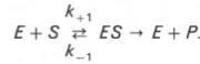 Если упростить это уравнение, исключив промежуточный ES-комплекс, то в уравнениях для скоростей прямой и обратной реакций обязательным компонентом является концентрация фермента: