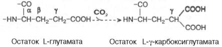 Реакция постсинтетического карбоксилирования γ-карбоксильной группы глутамата играет, кроме того, важную роль в связывании ионов Са2+ молекулой белка, поскольку при этом образуются дополнительные отрицательно заряженные ионы карбоксильных групп. Следует указать, что биотин не участвует в этой реакции карбоксилирования.