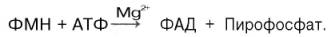 Образование ФАД в тканях также протекает при участии специфического АТФ-зависимого фермента ФМН-аденилилтрансферазы. Исходным веществом для синтеза является ФМН: