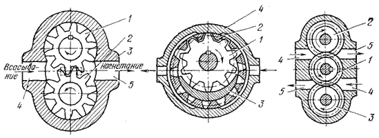 Рис.3.1. Схемы шестеренных насосов: