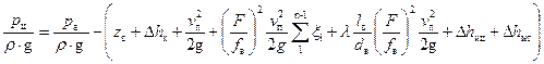 Умножив правую и левую части уравнения (35) на (ρ∙g) получим зависимость давления в цилиндре насоса от величины х перемещения поршня: