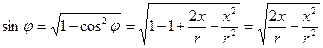 Для исключения из уравнений (26), (27) и (28) тригонометрических функций, воспользуемся уравнением (8) из которого выразим cosφ, а затем – sinφ: