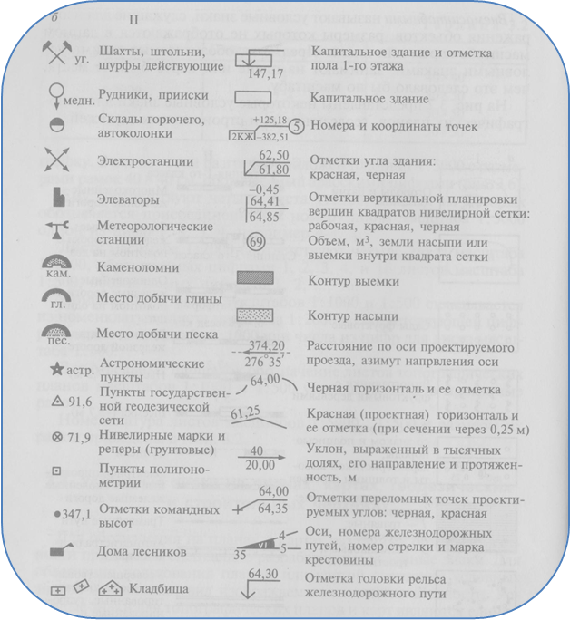 а – для топографических планов (І – масштабные, ІІ – внемасштабные);
