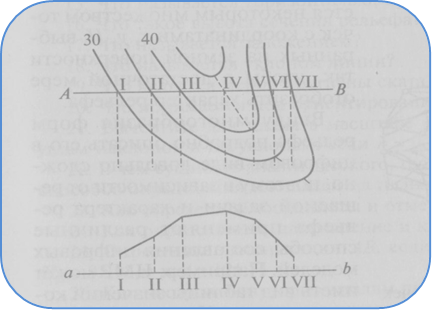 Для построения профиля, на карте отмечаются точки пересечения горизонталей с линией разреза (рис.16).