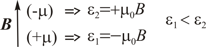 Во внешнем магнитном поле В возможны два энергетических состояния электрона: