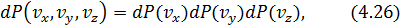 Как видно из (4.25), вероятность выражается произведением одномерных вероятностей, поскольку по своей сути является вероятностью произведения трех независимых событий: