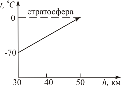 на каждый километр высоты проходит через минимум в тропопаузе, а затем в стратосфере возрастает с увеличением высоты и у верхней границы достигает значений, близких к 0º