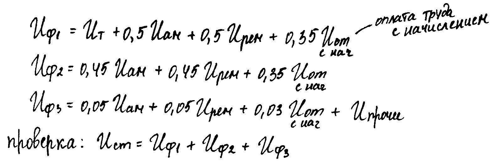 2 этап. Издержки фаз производства распределяются между видами продукции.