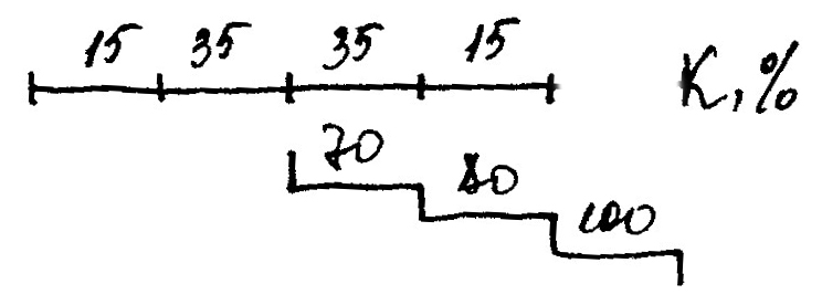 | Кiкэс | - | 0,15Ккэс | 0,35Ккэс | 0,35Ккэс | 0,15Ккэс | - | - | - | - | Ккэс | ||