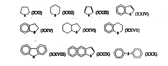XXI - тиофан (тетраметиленсульфид, tK= 121,2 °C): XXII - циклогексиленсульфид (пентаметиленсульфид, tK = 141,8 °C); XXIII - тиофен (tK =84,1 °C); XXIV-бензотифен; XXV - бензотифан; XXVI - тионафтен; XXVII - тиотетралин; XXVIII -дибензотифен; XXIX - нафтотифен; XXX - дифенилсульфид.