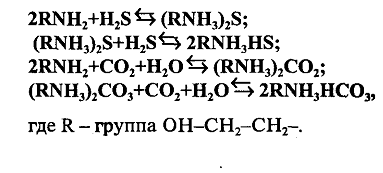 Процесс моноэтаноламиновой очистки газов от H2S и СО2 основан на хемосорбционном их взаимодействии с образованием легко разлагаемых при нагревании солей:
