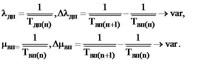 В соответствии с разработанной БММ 12 набор параметров модели следующий: λдп=var (изменяется при переходе из одного фрагмента в другой, т.к. Δλдп=var); μвп=var (изменяется при переходе из одного фрагмента в другой, т.к. Δμ=var). Этот вариант возможно описать набором выражений: