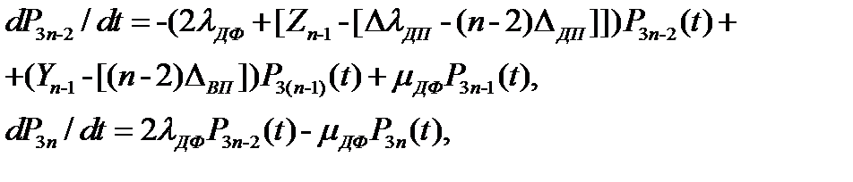 Для построения многофрагментой марковской модели следует ввести допущение о том, что параметры, характеризующие восстановление ПС после проявления ДППС μвп(1), Δμвп(1) и Δвп(1) – первого информационного канала равны параметрам μвп(2), Δμвп(2) и Δвп(2) – второго информационного канала. Поэтому, в силу линейности разрабатываемой модели и для упрощения процесса моделирования возможно введение нового параметра Μвп – суммарной интенсивности восстановления после проявления ДП ПС: