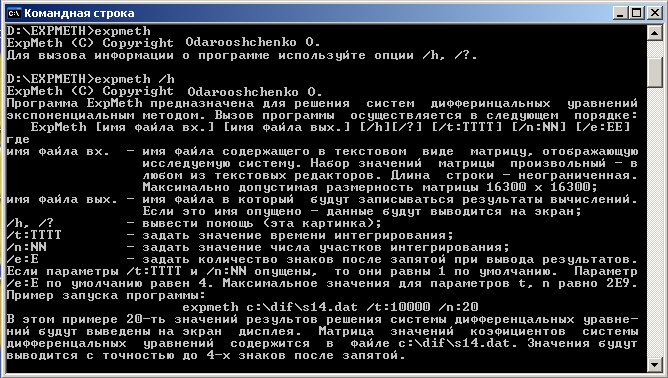 Для выполнения проектной оценки надежности СВГ и анализа показателей надежности проектируемой системы используются средства, позволяющие оценить надежность с учетом отказов аппаратно-программных средств. В зависимости от учитываемых дефектов, для однофрагментных моделей такую оценку можно выполнить с помощью специализированных программных пакетов, например, ПС «Relex». В случае учета изменения параметров потоков отказов и восстановлений ПС при оценивании надежности осуществляется построение ВМЦ согласно выбранной БММ. Далее производится расчет и исследование СДУ Колмогорова, описывающей построенную ВМЦ. В этих целях предлагается использовать ПС EXPMETH.EXE, интерфейс которой представлен на рис. 3.31. Эта программа используется в практикуме №1.