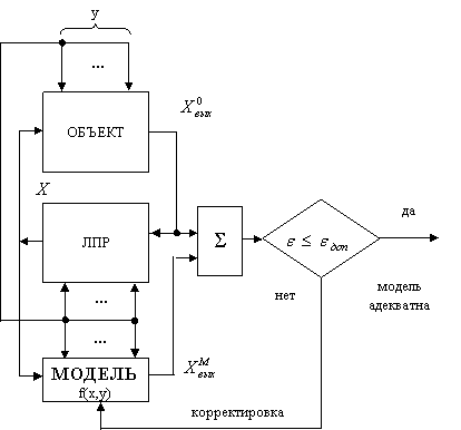 Решение о том, что выбранная модель адекватна, принимают эксперты. Проверку адекватности можно проводить путем сравнения выходных характеристик модели Хмвых или предвиденного поведения модели с фактическими характеристиками объекта Х0вых , при изменении значений внешних факторов ws, а также (при возможности) параметров системы y в широком диапазоне колебаний (рис. 4.9).