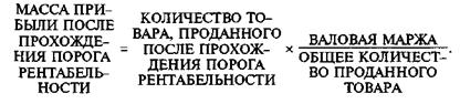 Для определения массы прибыли после прохождения порога рентабельности, необходимо умножить количество товара, проданного сверх порогового объема производства, на удельную величину валовой маржи, приходящейся на каждую единицу проданного товара: