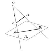 П1 в точке А1. Точку А1 принято называть центральной проекцией точки А на плоскость П1. Проекцией фигуры называется множество проекций всех ее точек. Такой вид проецирования называется линейным центральным проецированием( Л.Ц.П.)