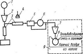 Рис. 1. Схема подготовки твердого топлива для камерного сжигания