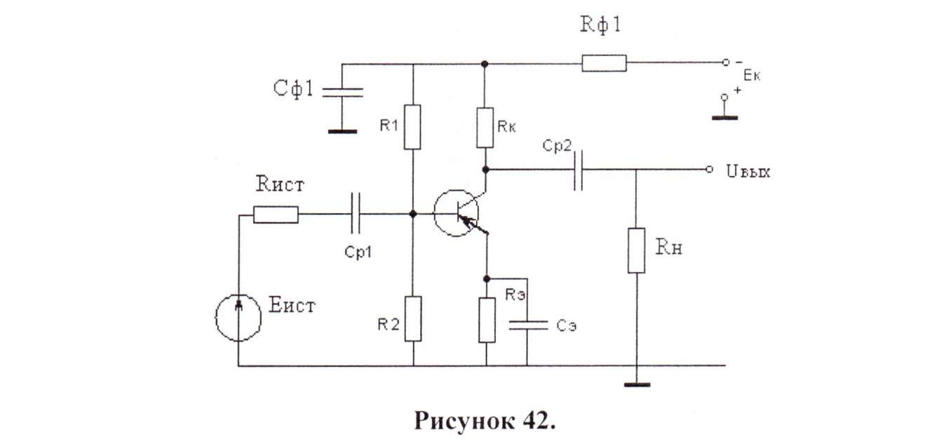 Конденсатор Сэ шунтирует резистор Rэ по переменному току, исключая отрицательную обратную связь по переменному току, а также частичное падение усиливаемого переменного сигнала на Rэ. Отсутствие Сэ вызывает уменьшение коэффициента усиления каскада по напряжению в 1,5
