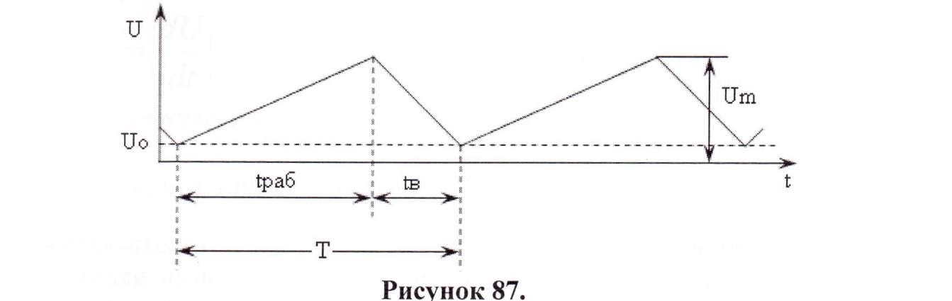 В различных измерительных приборах в качестве важных узлов функциональной схемы применяются генераторы, вырабатывающие сигналы специальной формы. Например в осциллографах для смещения луча по оси х необходимо использовать генератор линейно - изменяющегося напряжения. Линейно изменяющееся напряжение часто называют пилообразным. Напряжение в таком генераторе изменяется пропорционально времени, прошедшего с начала процесса. В идеальном случае в соответствии с формулой: U(t)=at, где а - коэффициент пропорциональности определяющий изменение напряжения за единицу времени. Так как напряжение не может возрастать бесконечно, то время линейного изменения ограничено определенным временным интервалом - длительностью tpa6. После окончания рабочей стадии напряжение в течение некоторого времени tB (время восстановления) изменяется до первоначального значения.