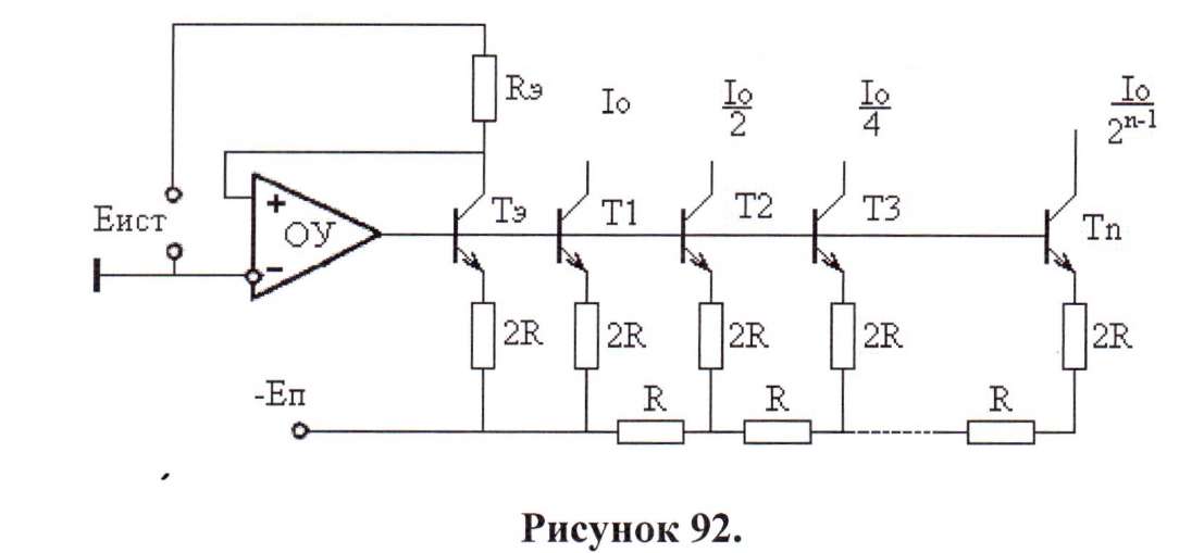 В данной схеме разрядные токи получают от Еист и эталонных разрядных резисторов, сопротивление которых возрастает с уменьшением разрядов по двоичному закону.