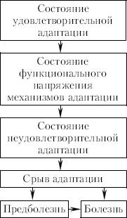 Дезадаптация и развитие патологических состояний происходит поэтапно (рис. 1.5).