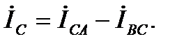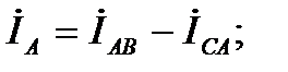 При соединении нагрузки в "треугольник" (рис. 7.7; 7.8) линейные токи не равны фазовым токам нагрузки и определяются через них по первому закону Кирхгофа: