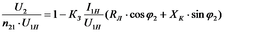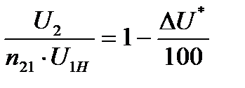 Внешняя характеристика трансформатора определяет зависимость напряжения вторичной обмотки U2 от тока вторичной обмотки I2 при постоянном коэффициенте мощности cos j2 = const и номинальном напряжении первичной обмотки U1. Часто для определения внешней характеристики пользуются относительными единицами (рис.14.6).