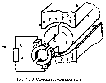 Чтобы выпрямить переменный ток, необходимо в машине применить коллектор (рис. 7.1.3).