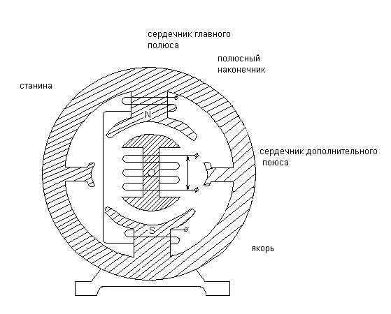 Машина постоянного тока конструктивно состоит из неподвижной части - статора и вращающейся - ротора. Статор имеет станину, на внутренней поверхности которой крепятся магнитные полюсы с обмотками (рис. 7.1.6).