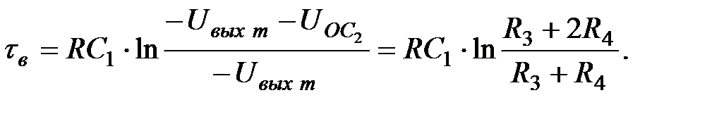 В установившемся режиме (от момента t2 и далее) напряжение конденсатора изменяется от UОС до - UОС и обратно. На диаграмме рис. 16.3б интервал времени t2 – t3 определяет длительность паузы, а интервал t3 – t4 – длительность импульса, причем: