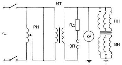Рис. 6.2. Схема испытания главной изоляции повышенным напряжением.
