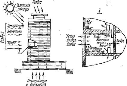 Рис. 1.3. Различные виды воздействий на тепловой, воздушный в влажностный режимы помещения вздании.