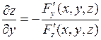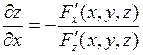 , частные производные этой неявно заданной функции могут быть найдены по формулам