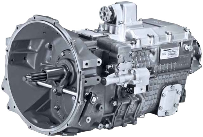На автомобилях-тягачах, предназначенных для работы в составе автопоездов используется модернизированная десятиступенчатая коробка передач КАМАЗ , состоящая из основной пятиступенчатой коробки передач и переднего двухступенчатого редуктора-делителя.