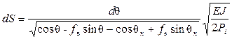 Для определения момента упругой деформации ворса цилиндрической щетки воспользуемся полученным ранее выражением для dS и преобразуем его к виду: