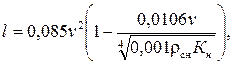 Для дорожных роторных снегоочистителей с дальностью отбрасывания снега l ≤ 25—30 м и q = 45° используют упрощенную эмпирическую зависимость, учитывающую аэродинамическое сопротивление: